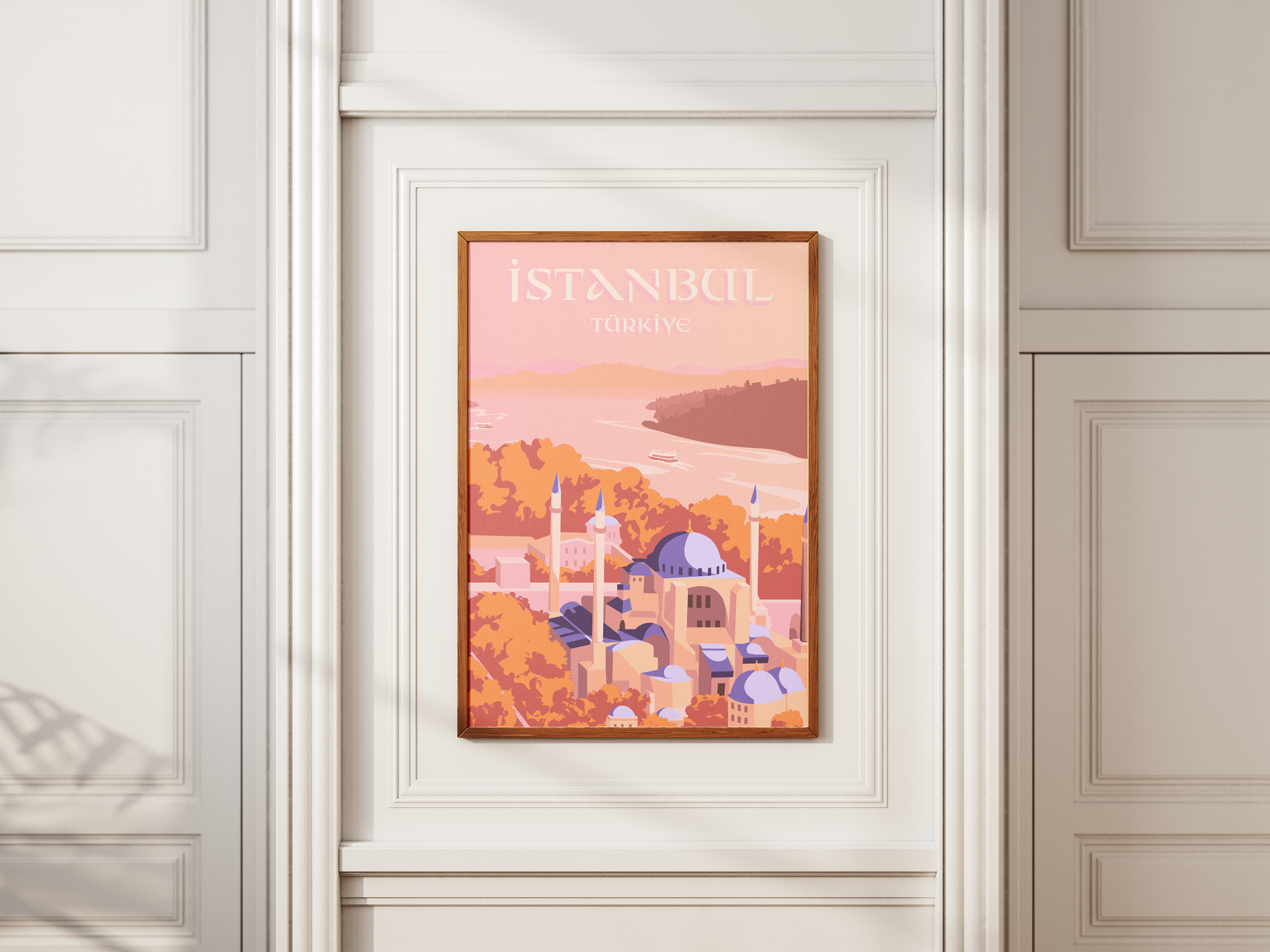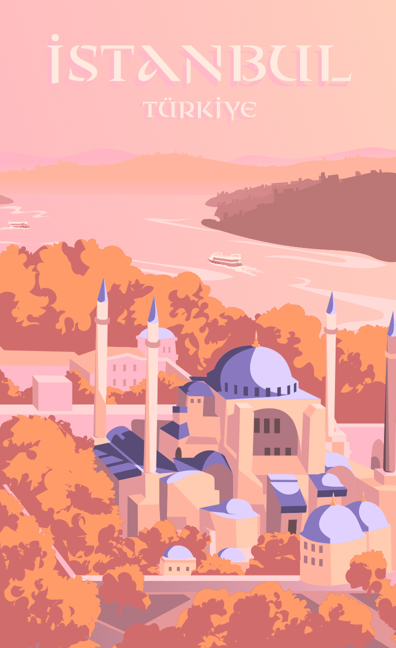 This destination poster features the Hagia Sophia, one of Turkey’s most iconic landmarks, celebrated for its rich history and architectural beauty. The design process began with a hand-drawn sketch to establish the composition and key details of the structure. After refining the drawing, the artwork was vectorized in Adobe Illustrator, allowing for crisp lines, scalable graphics, and a polished finish. The combination of traditional sketching and digital techniques gives the poster both a handcrafted feel and a professional, modern presentation.